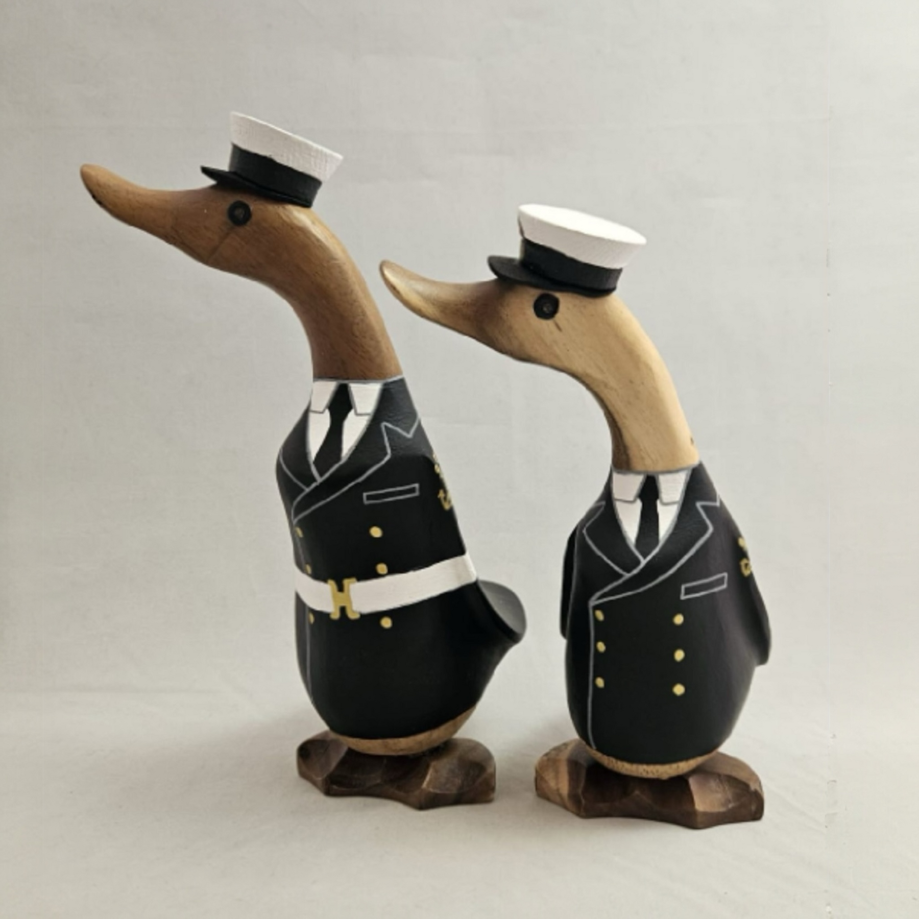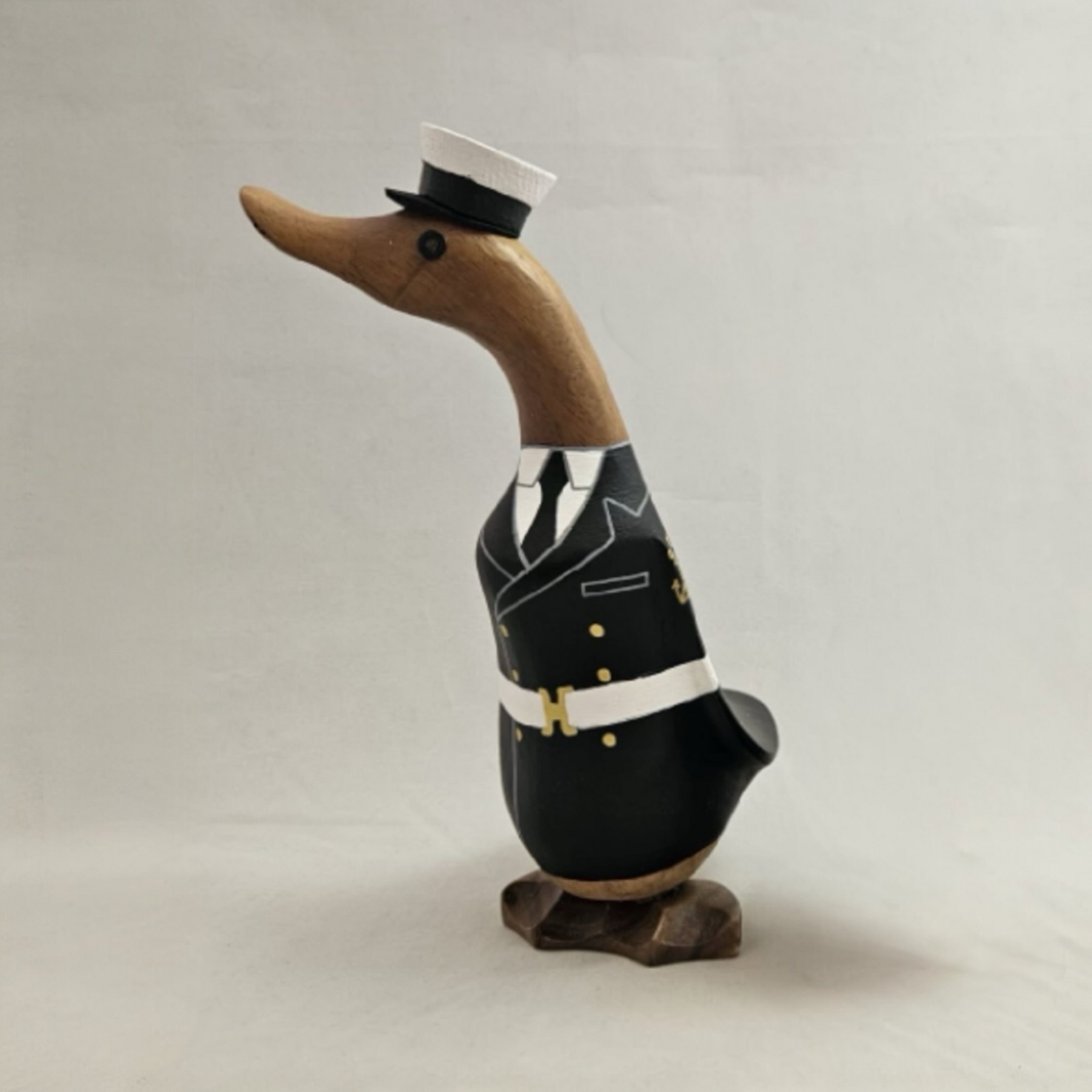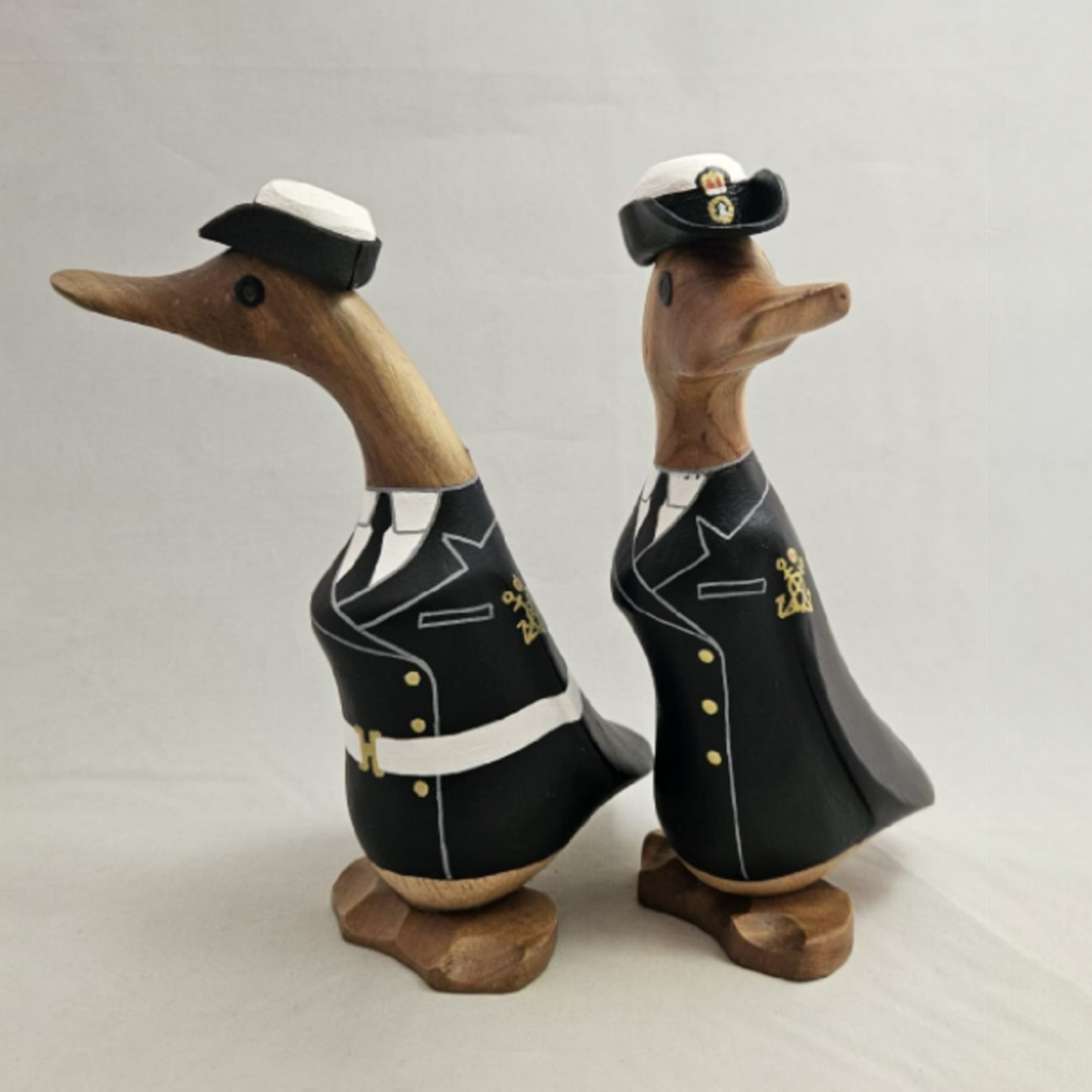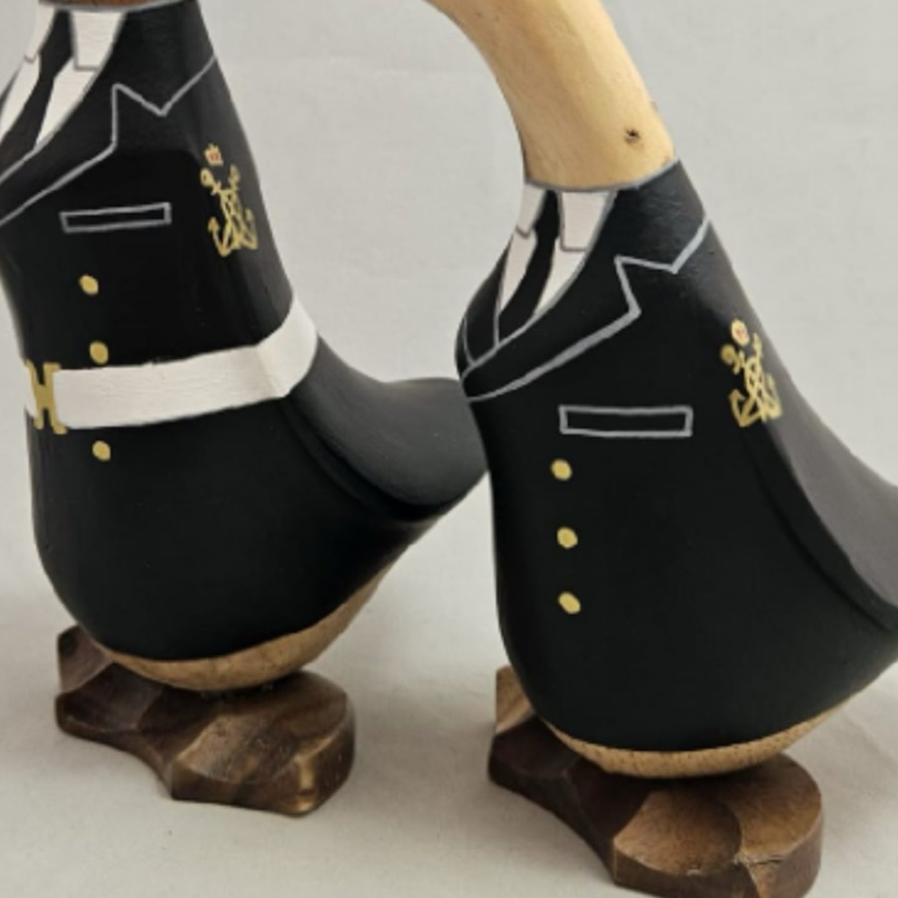 This is a hand-painted Royal Navy No.1 Uniform Duck for Petty Officers! Your duck will come with a hand crafted wooden hat, and in a replica uniform which is as close as possible to the current kit worn by our Royal Navy.